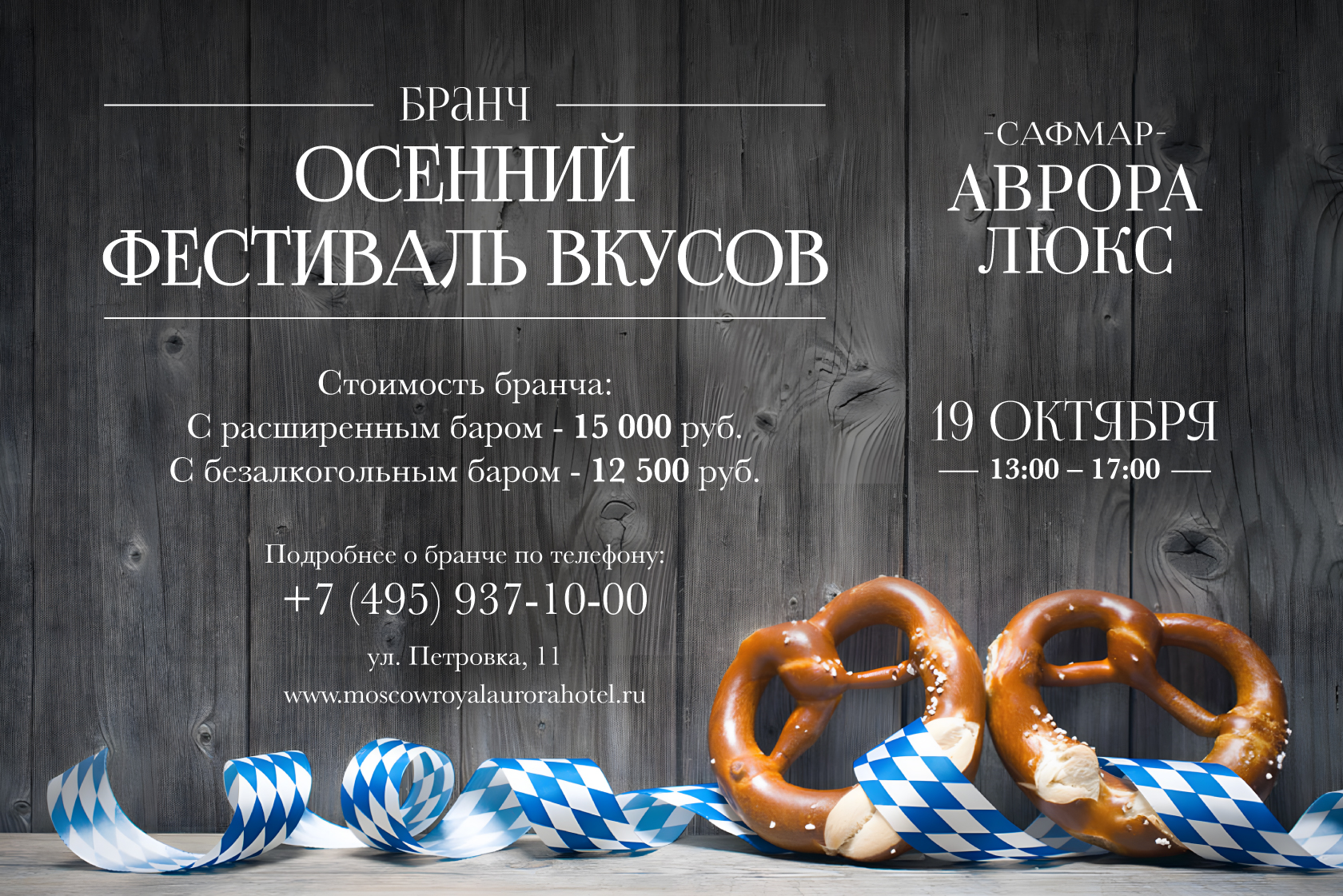 В 5* отеле «Сафмар Аврора Люкс» знают толк в организации воскресных бранчей, и 19 октября отельный ресторан «Аврора» приглашает на «Осенний фестиваль вкусов».
